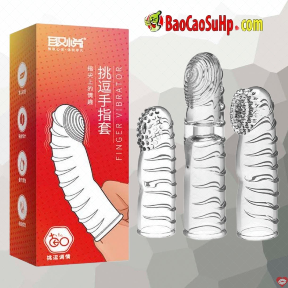 – 01 ngón tay gồm cao cấp các hạt gai tròn như bọt biển nổi theo yêu cầu để xoa massage điểm G kích thước: 73 * 22 mm
